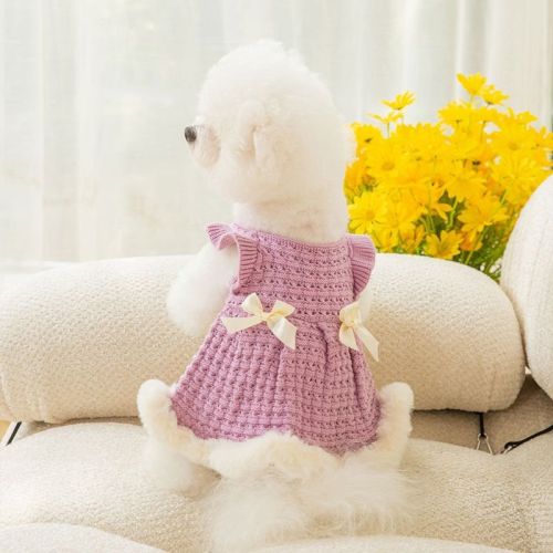 Warm and thickened dog clothes in autumn and winter; bow sweater skirt; dog sweater